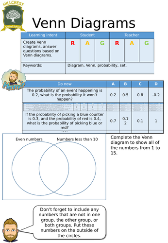 › venn-diagramsVenn Diagram Worksheets - Super Teacher Worksheets Venn Diagrams (Math Worksheets) This page has a set printable Venn Diagram worksheets for teaching math. For Venn Diagrams used in reading and writing, please see our compare and contrast. Level: Basic Grades 3-5 Math Venn Diagrams Complete each V.D. by copying the numbers from the box into the correct place. 4th through 6th Grades View PDF